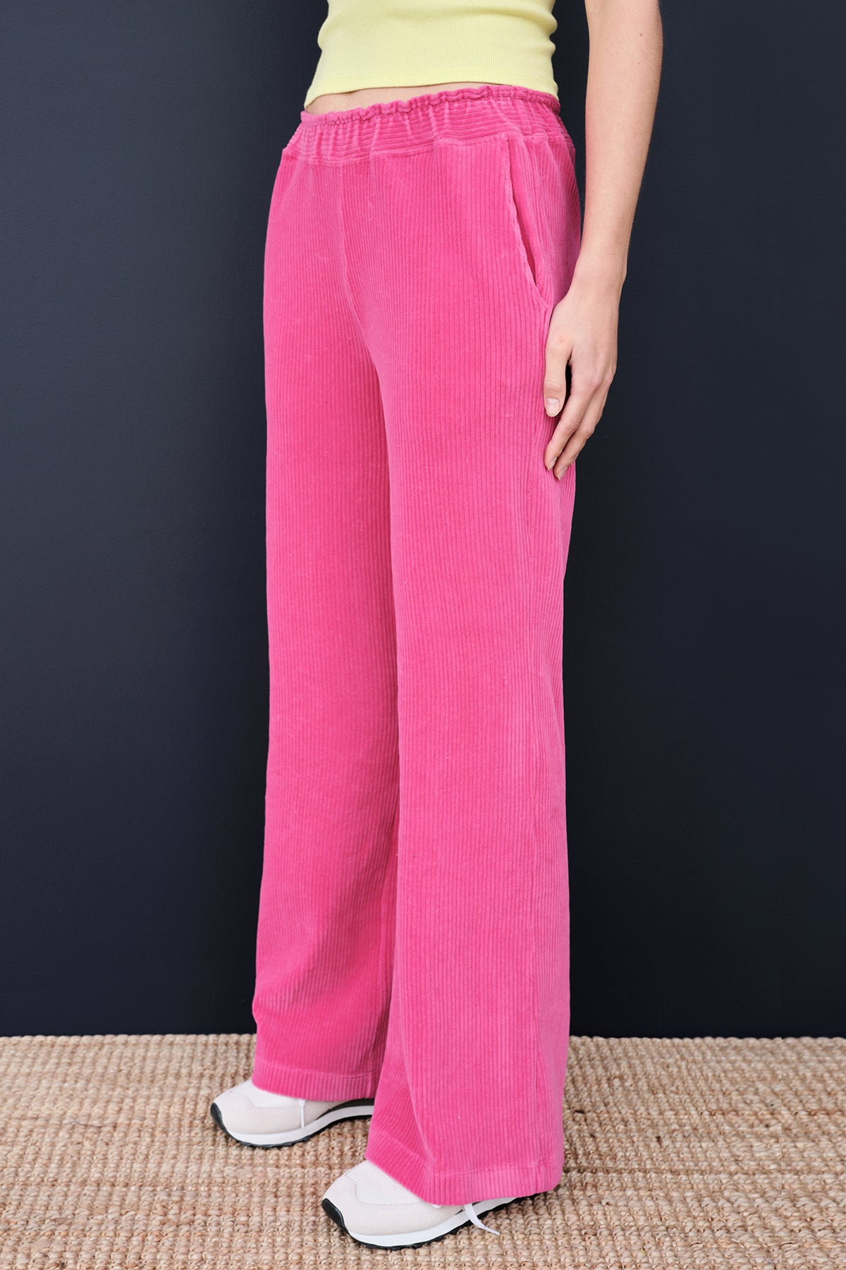 These corduroy wide-leg pants are an effortless way to bring plush texture into your wardrobe. Anchored by an elasticized waist, this pull-on style features pleat detailing at the front and a roomy fit through the legs.